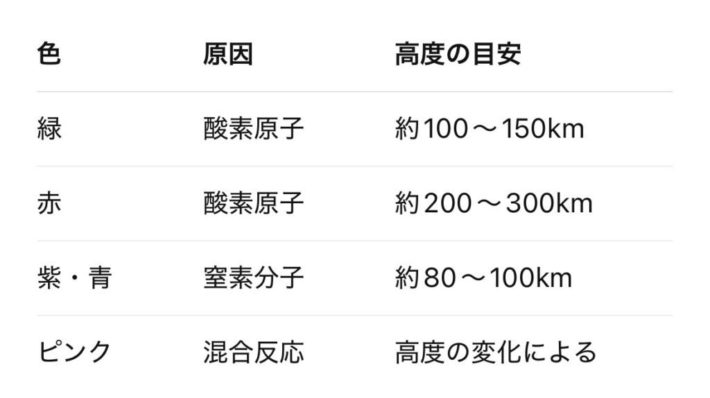 オーロラが緑、赤、紫などさまざまな色を持つのはなぜでしょう?