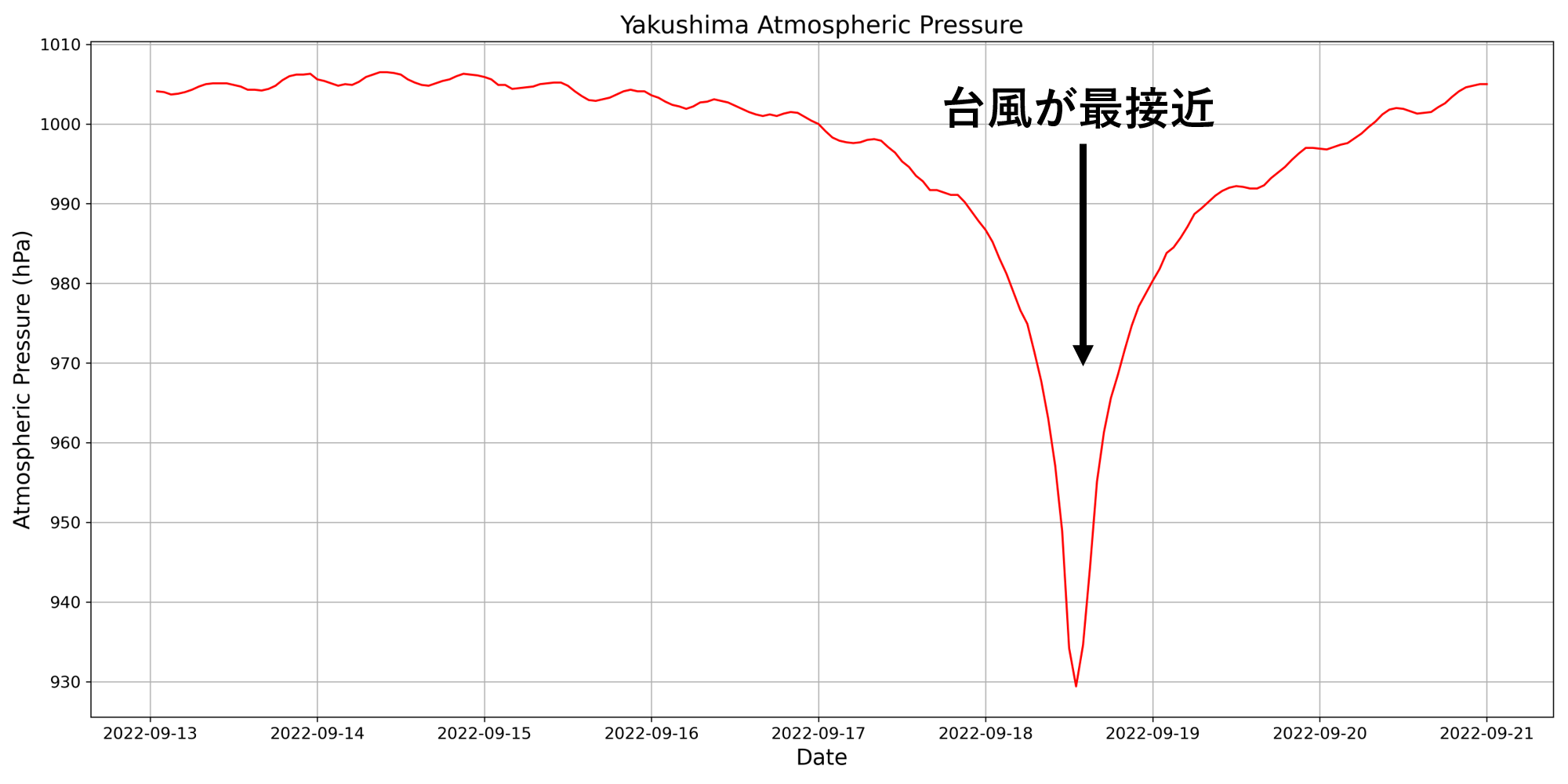 このような急激な気圧低下は、台風の接近をリアルタイムで把握する手がかりにもなります。